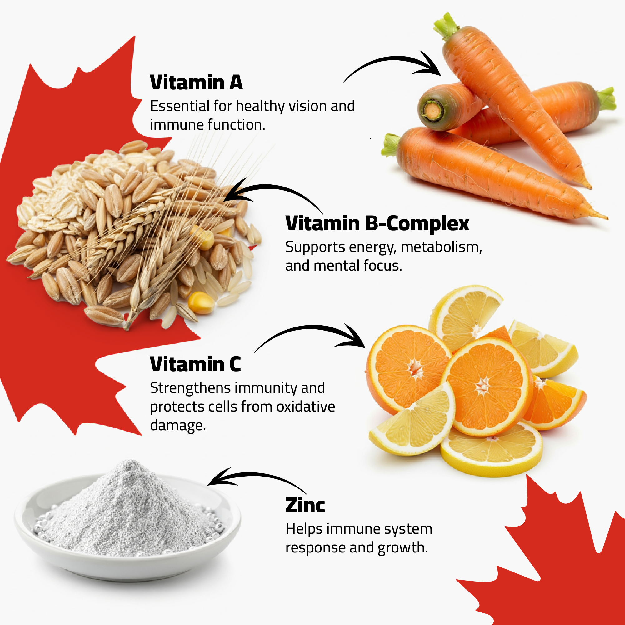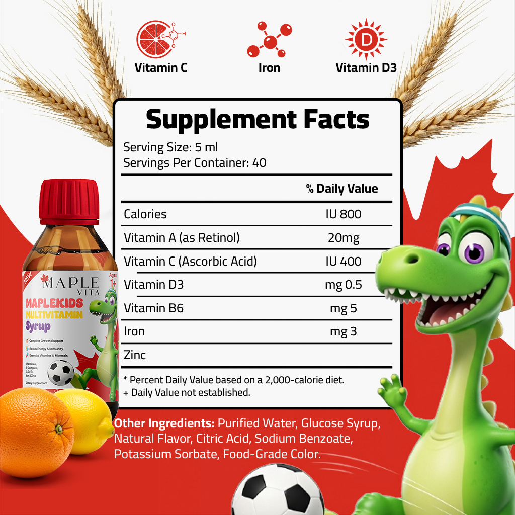 - الطاقة والحيوية: تدعم فيتامينات B إنتاج الطاقة وتحافظ على نشاط الأطفال وانتباههم.
