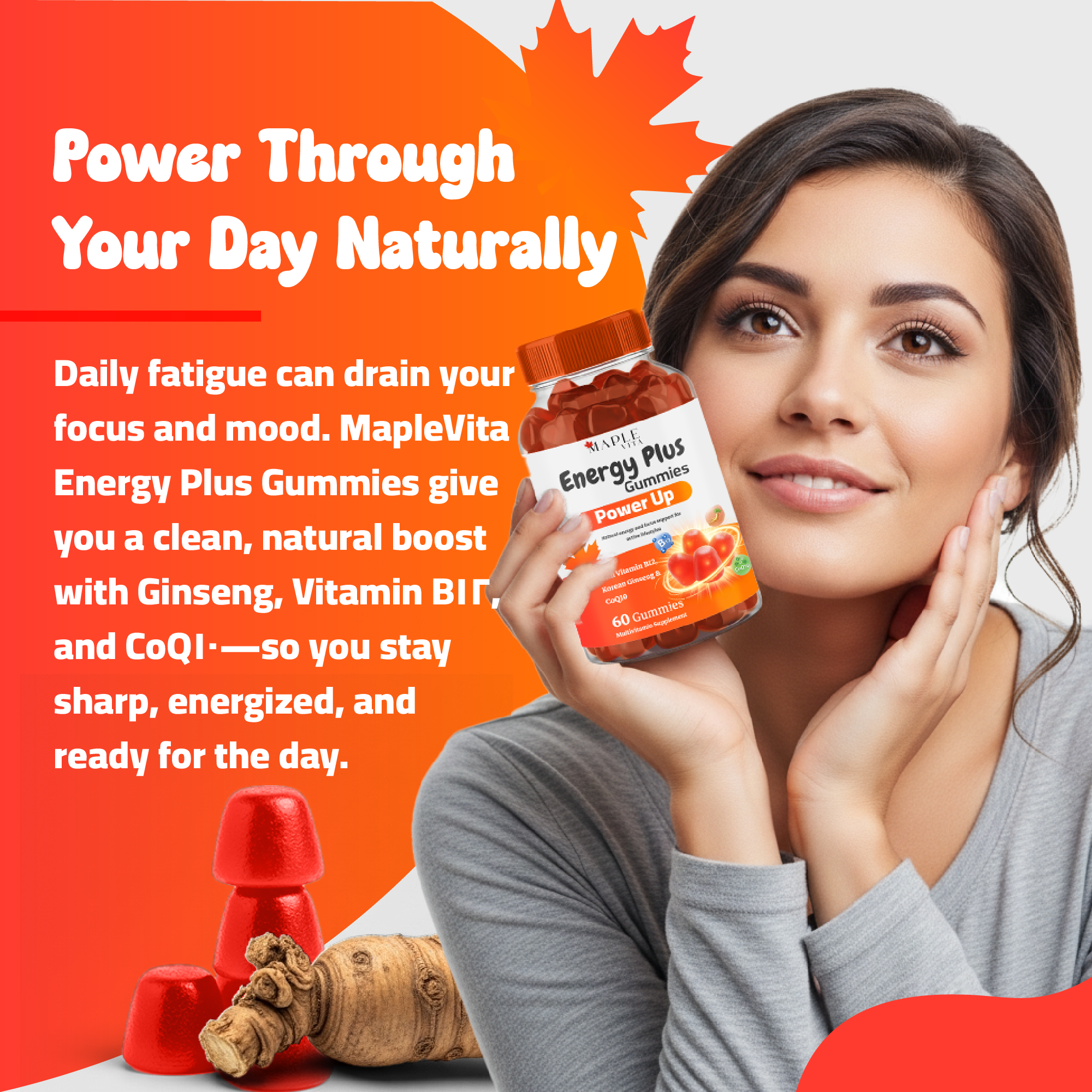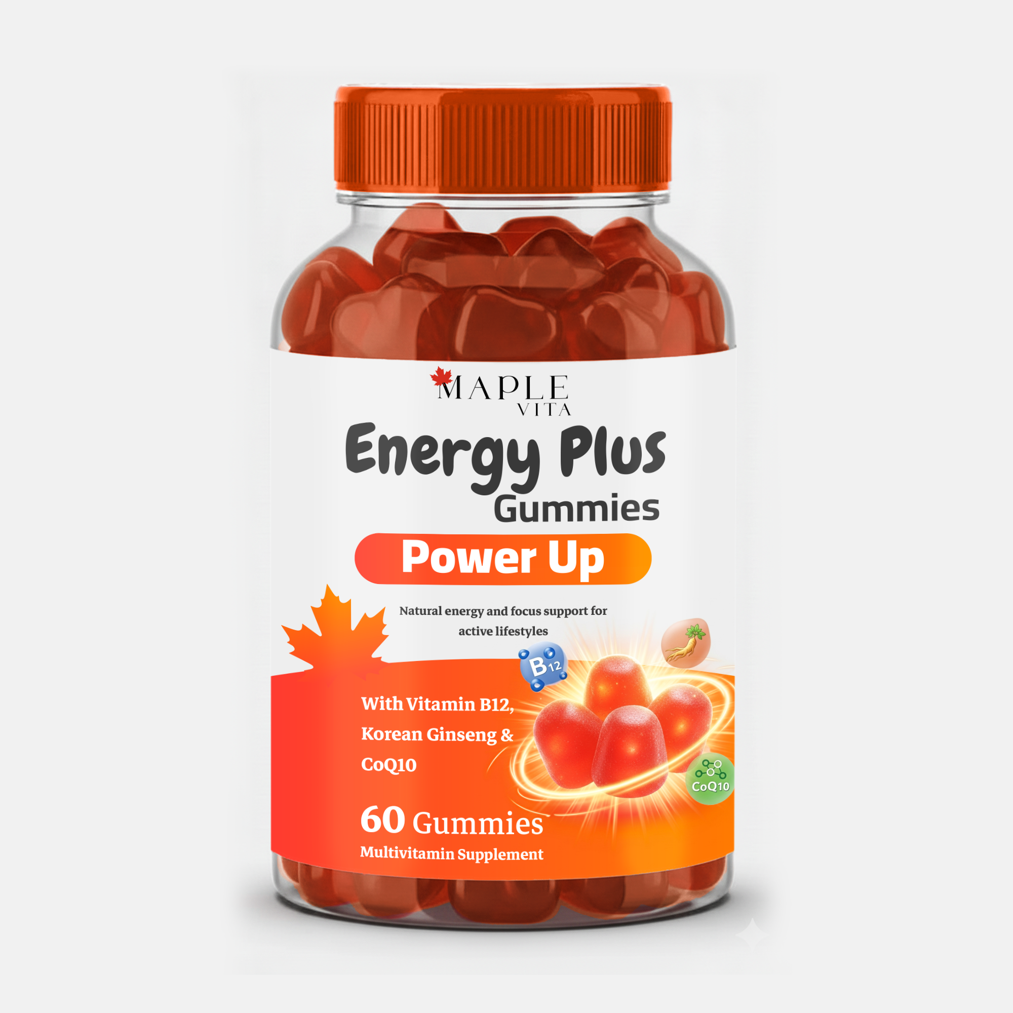 MapleVita Energy Plus Gummies are formulated with Vitamin B12, Ginseng, and CoQ10 to help fight fatigue, enhance focus, and improve physical performance. Ideal for active adults needing a natural energy boost.