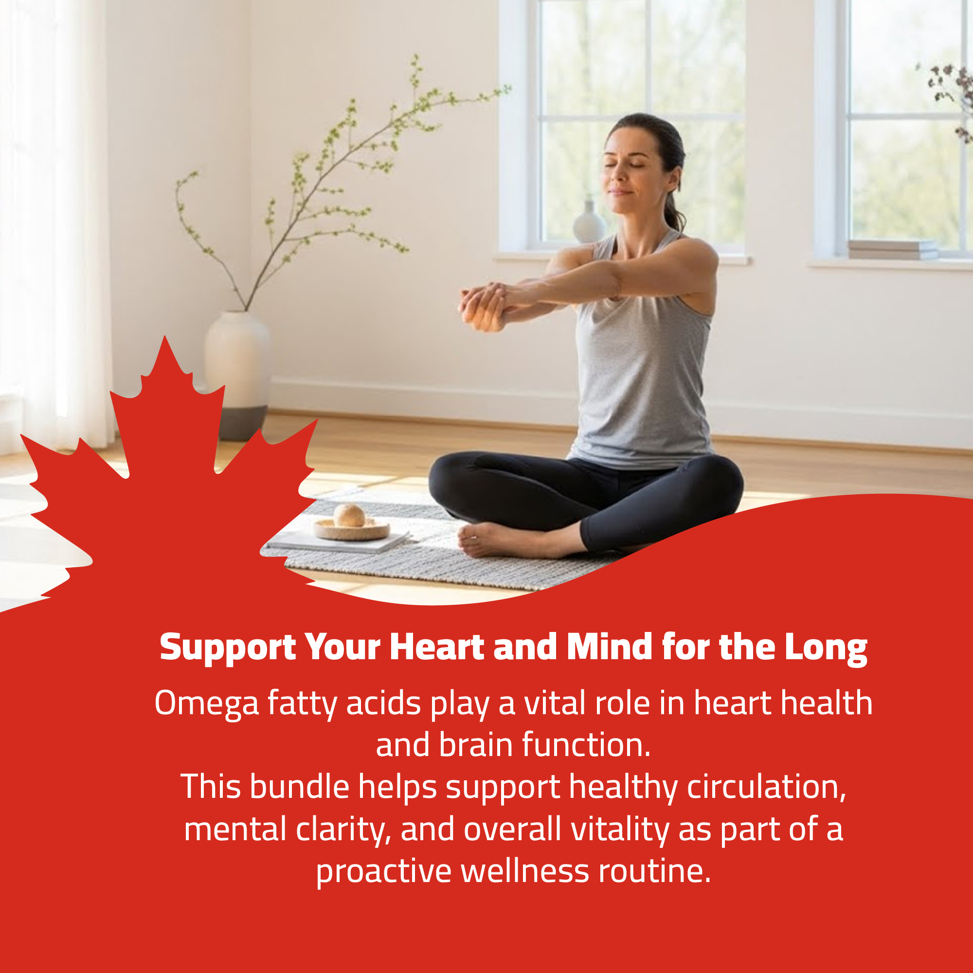 The Heart & Brain Omega Bundle supports heart health and brain function.