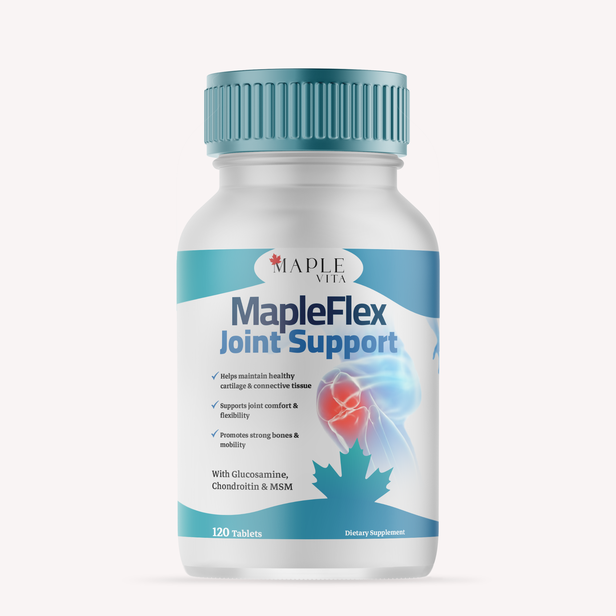 MapleFlex supports joint health, flexibility, and mobility with a powerful blend of Glucosamine, Chondroitin, MSM, and Hyaluronic Acid. Designed for adults with joint discomfort or active lifestyles, it helps maintain cartilage, reduce stiffness, and keep your joints strong and flexible every day.